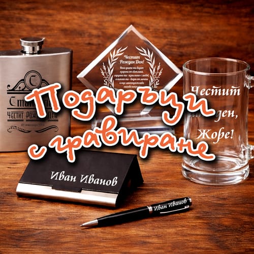 В нашия онлайн магазин ще намерите: гравирани подаръци с лично послание, персонализирани сувенири, забавни и оригинални подаръци, подаръци за мъже, жени и деца, тематични подаръци за различни поводи
