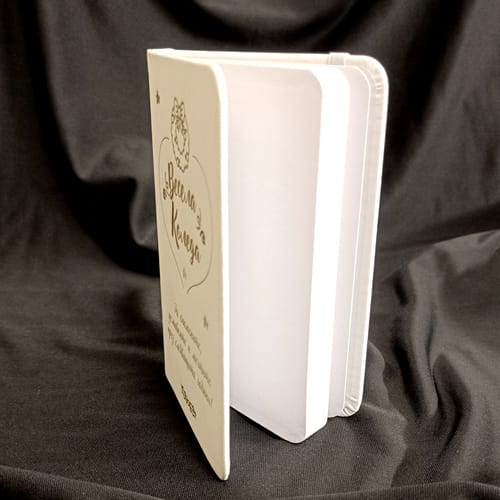Елегантен и стилен бележник с компактни размери, идеален за всяка чанта или бюро. Корица от еко бяла кожа с изчистен и изискан вид. Вътрешността съдържа бели листа, подходящи за бележки, идеи или вдъхновяващи мисли.