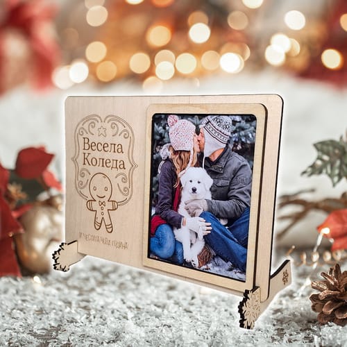 🎄Коледна, дървена, гравирана, картичка с Ваша снимка 🎁