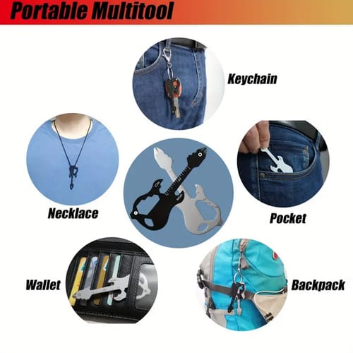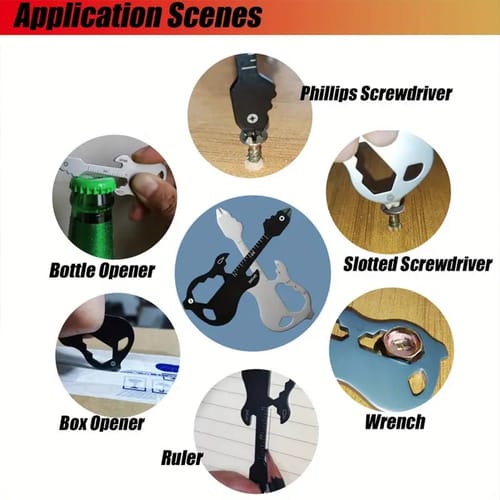 Комбинация от практичност и стил – този уникален мултифункционален инструмент във формата на китара е идеален подарък за всеки, който обича музиката, приключенията,нестандартните, но фунционални аксесоари! 💥