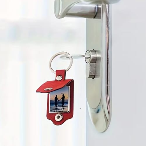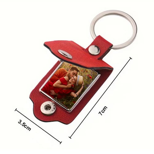 Този червен,кожен ключодържател е малък, но много мил жест. ❤️ Изработен от елегантна червена кожа и снабден с удобно тик-так копче, той крие специална изненада вътре – място за любима снимка, отпечатана върху метална пластина, която да носите винаги с Вас. 📸✨