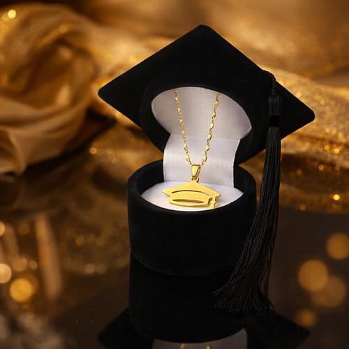 Това нежно колие във формата на абсолвентска шапка е символ на усилията, мечтите и новия път, който започва.