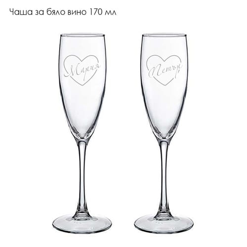 Подарете на любимия човек уникален и личен подарък с нашия комплект стъклени гравирани чаши, специално създаден за Свети Валентин. Всеки комплект е с романтичен дизайн и се персонализира с вашите имена, за да бъде подаръкът наистина само за вас двамата.