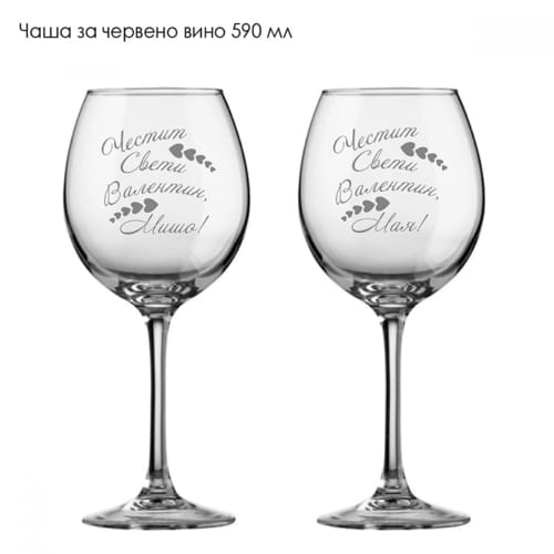 Подарете на любимия човек уникален и личен подарък с нашия комплект стъклени гравирани чаши, специално създаден за Свети Валентин. Всеки комплект е с романтичен дизайн и се персонализира с вашите имена, за да бъде подаръкът наистина само за вас двамата.