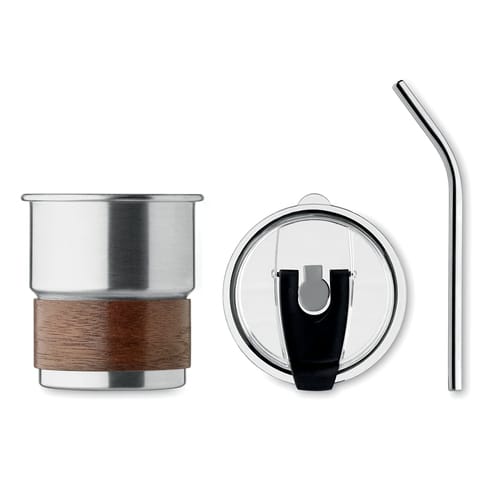 Красива, функционална, едностенна чаша от неръждаема стомана с метална сламка и капак. Разполага с подвижен захват от акациево дърво, който едновременно е практичен и красив акцент. Разполага с място за сламка и директно отвор за пиене, непропусклив капак. Вместимост: 260 мл. Тъй като това е едностенна чаша е възможен пренос на топлина.