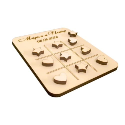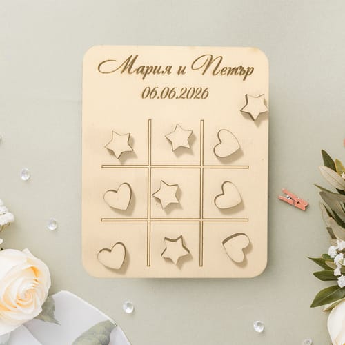 Внесете забавление и сантимент в големия си ден с тези уникални, ръчно изработени подаръчета за гости. Всяка игра на морски шах е лазерно гравирана и персонализирана с имената на младоженците и датата на сватбата, превръщайки я в незабравим спомен, който гостите ви ще запазят и използват.