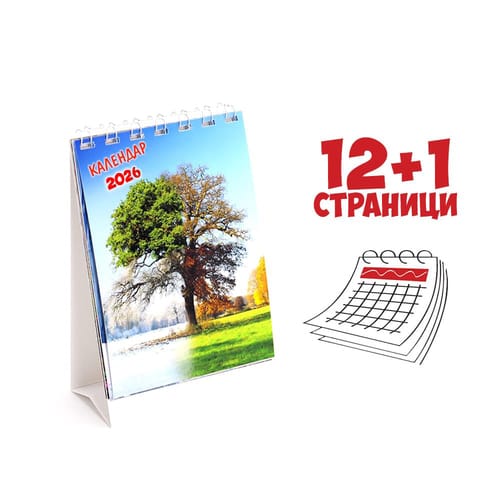 Хоризонтален календар , на който можете да поставите цели 13 снимки. Една от тях е за корица, а останалите 12 са за всеки един от месеците.