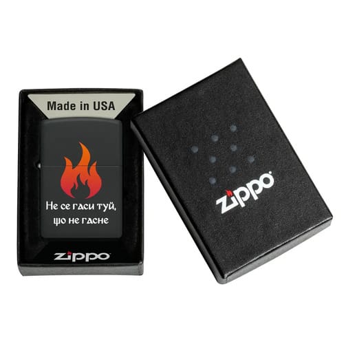 Прегърнете жизнения дух на България с тази единствена по рода си запалка Zippo. Тя е част от колекция, създадена специално за българския пазар, която отдава почит на богатото културно наследство на страната. Върху черната матирана повърхност е отпечатан цитатът "Не се гаси туй, що не гасне" от едноименното стихотворение на Иван Вазов, заедно с традиционния за Zippo символ на пламък.